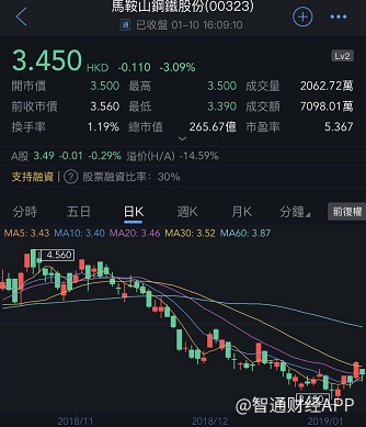截至今日收盘,马鞍山钢铁股份(00323)跌3.09%,报3.45港元。