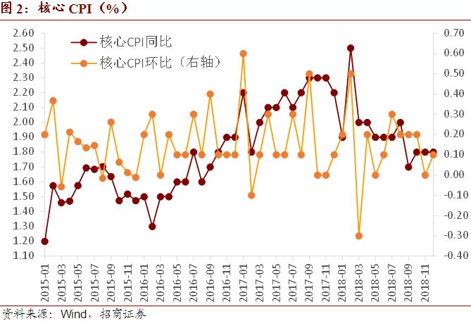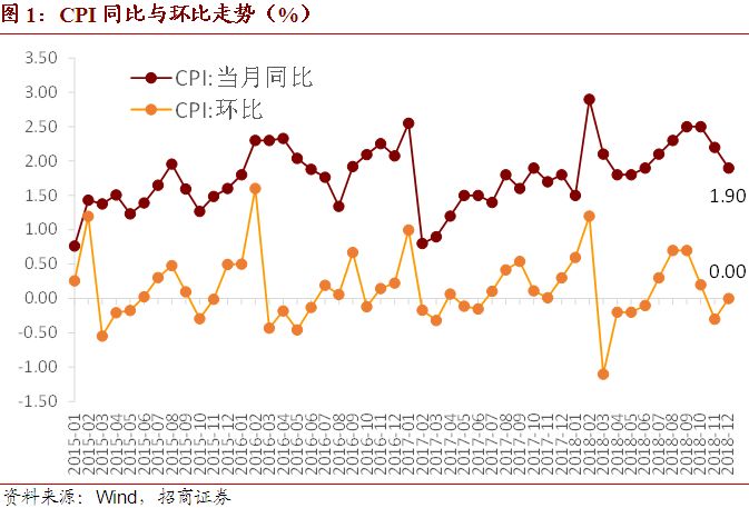 12月CPI同比涨幅再下降0.3个百分点至1.9 %低于市场一致预期,低于预期的来源主要是非食品部分,CPI环比0增长。