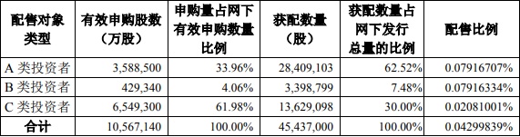 以上配售结果符合《发行安排及初步询价公告》中公布的网下配售塬则,其中零股 202 股按照《发行安排及初步询价公告》中公布的网下配售原则配售给德邦基金管理有限公司管理的德邦大健康灵活配置混合型证券投资基金。