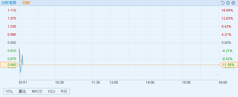 智通财经APP获悉,泰邦集团(02203)早盘股价快速跳水后拉升,一度跌超15%,截至9时35分,跌11.58%,报0.84港元,成交额1.11亿。