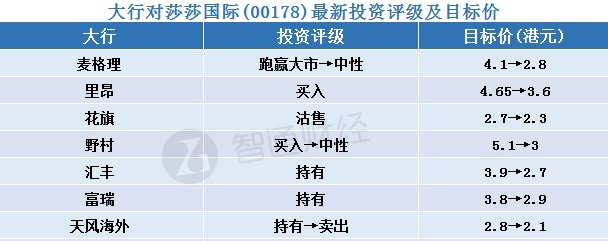 一、大行对莎莎国际(00178)最新投资评级及目标价汇总