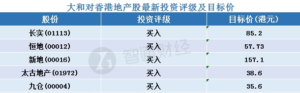 五、大和对香港地产股最新投资评级及目标价汇总