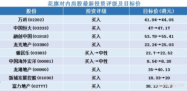 二、花旗对内房股最新投资评级及目标价汇总