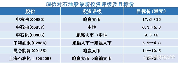 三、瑞信对石油股最新投资评级及目标价汇总