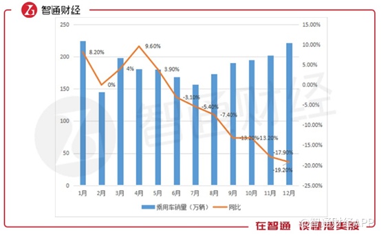 再具体一点,根据智通财经APP的统计,2018年乘用车全年累计销量2235万辆,同比下降5.8%,其中在12月份,销量同比下滑达19.2%,连续8个月增长持续下滑,且连续6个月出现负增长。这说明汽车的“消化”能力已经到了一个瓶颈。