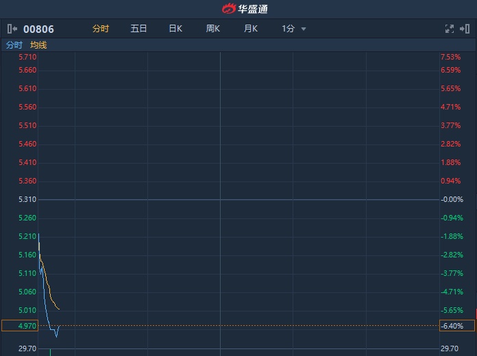 智通财经APP获悉,惠理集团(00806)早盘直线跳水,截至9时46分,跌6.4%,报4.97港元,成交额1487万港元。