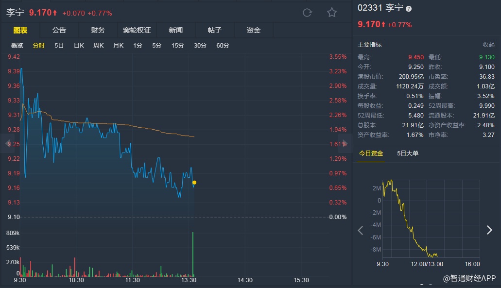 智通财经APP获悉,花旗发表研究报告称,李宁(02331)去年第四季度零售销售增长胜预期,将其目标股价上调15%至11.4港元,即较上周五收市价9.1港元仍有上升25%的空间,评级为“买入”。