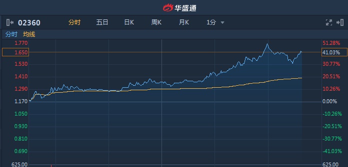 智通财经APP获悉,优品360(02360)上市次日受市场追捧,盘中一度涨近五成至1.74港元,截至15时37分,涨41.03%,报价1.65港元,成交额1.681亿。