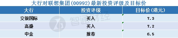 三、大行对联想集团(00992)最新投资评级及目标价汇总
