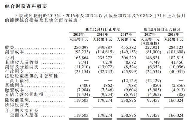 截至2018年8月31日的八个月,该集团的毛利为1.825亿,同比增长24%;期内溢利及全面收入总额为1.66亿,同比增长71%。