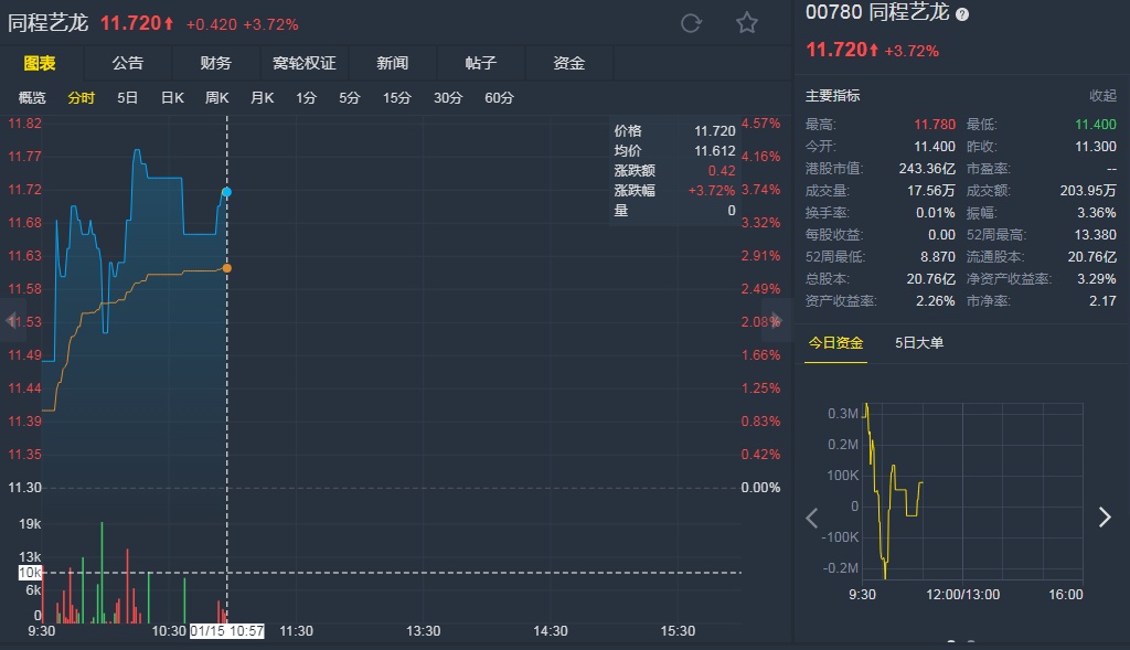 智通财经APP获悉,瑞信发表的报告称,同程艺龙(00780)可成超级App年代的受益者,该行表示留意到三个有利公司的趋势,一是受惠收入提升及基建改善助长旅游需求,二来线上旅行社渗透率持续提升,三来行业进入超级App年代用户集中使用数个多功能的应用程式,能连接这些超级App的线上旅行社将更易争取市场份额。首予公司“跑赢大市”评级,目标价17港元。