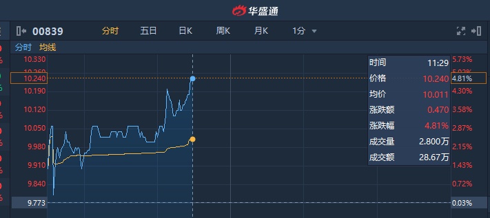 智通财经APP获悉,中教控股(00839)盘中快速拉升,截至11时28分,涨4.81%,报10.24港元,成交额3528万港元。