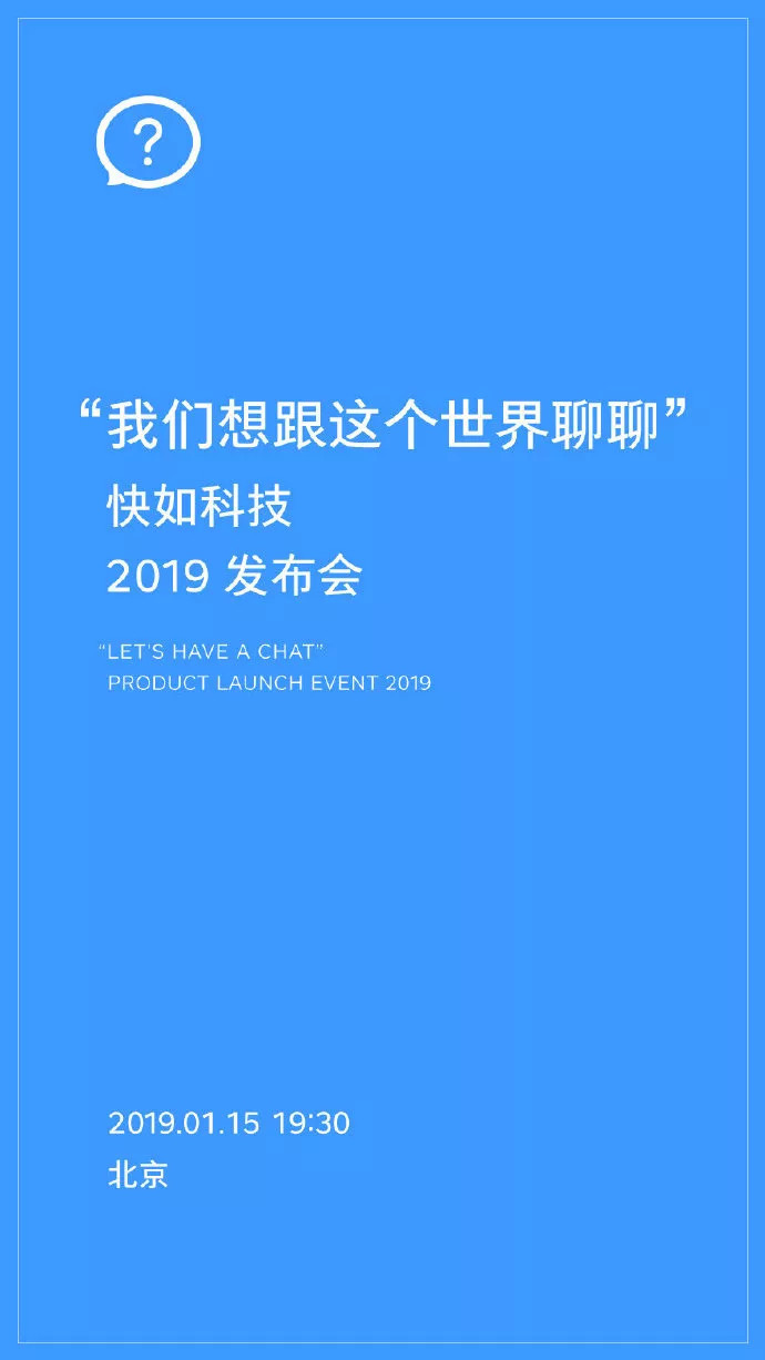时隔近一个月后,1 月 8 日,快如科技官方微博发布了即将召开 2019 新春发布会的消息,将以“我们想跟这个世界聊聊”为主题,由快如科技的创业团队及投资人罗永浩主讲。而随后,罗永浩也转发了此微博。