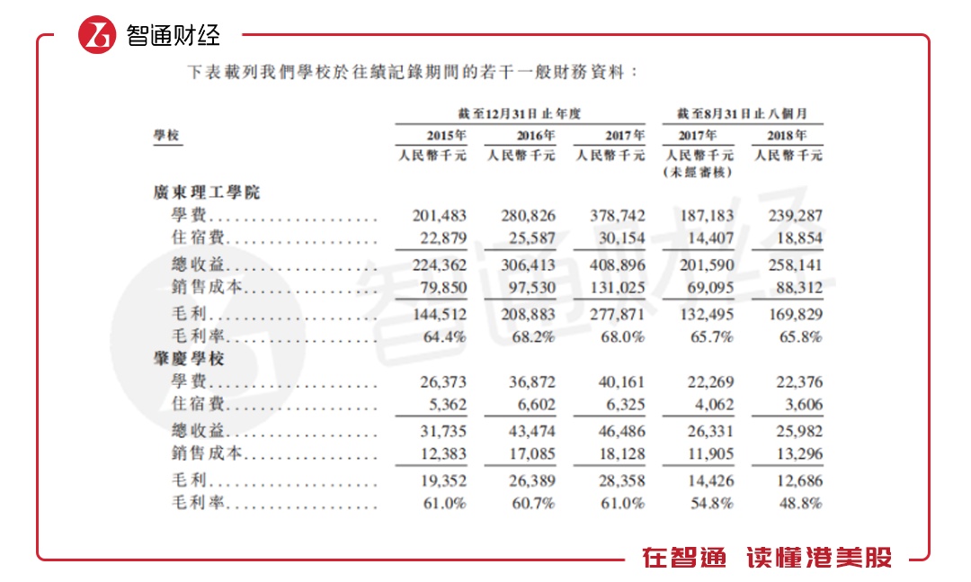 科培教育的成长得益于广东理工学院,该学院是科培教育的业绩及成长核心,历年收入贡献均达九成,2015-2017年收入复合增长率达35%,毛利复合增长率38.7%,2018年首八个月,该学院收入和毛利分别增长29%和28.8%,历年毛利率维持在65%以上水平,均高于肇庆学校。