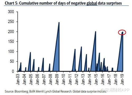 上述图表所传达的信息也显示在高频经济指标中,世界各地的负面经济数据已持续数天,接近自金融危机以来的最长时间。
