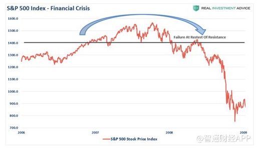 这一点标志着筑顶过程的结束,也标志着“08金融危机”的开始。