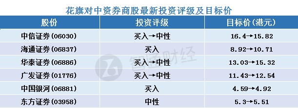 一、花旗对中资券商股最新投资评级及目标价汇总