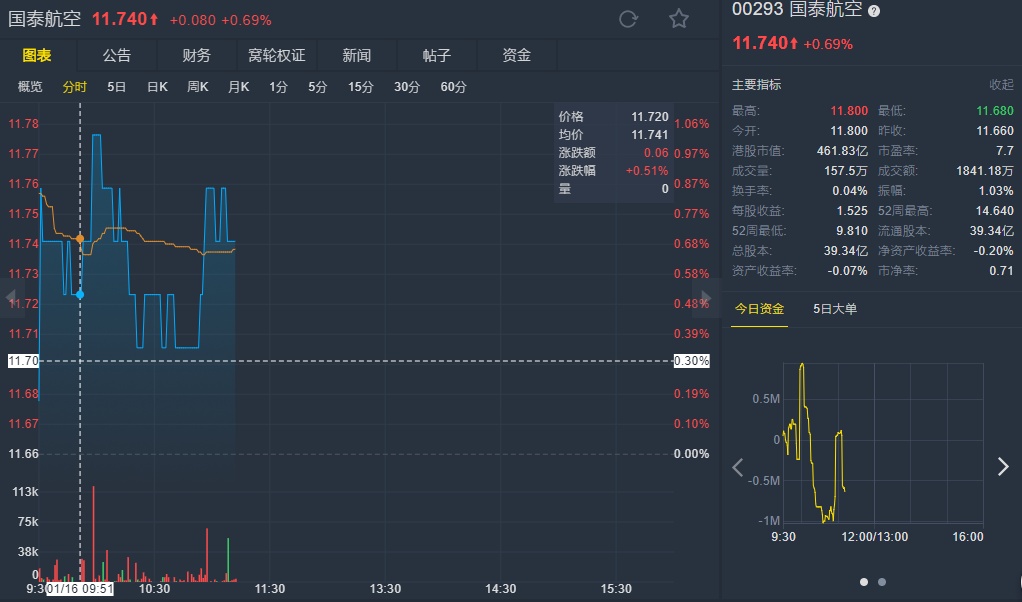 该行预期,由于美元近来疲弱,相对下人民币升值,及油价下跌,对国泰业务有利。富瑞维持其“买入”投资评级,目标价为15.4港元。