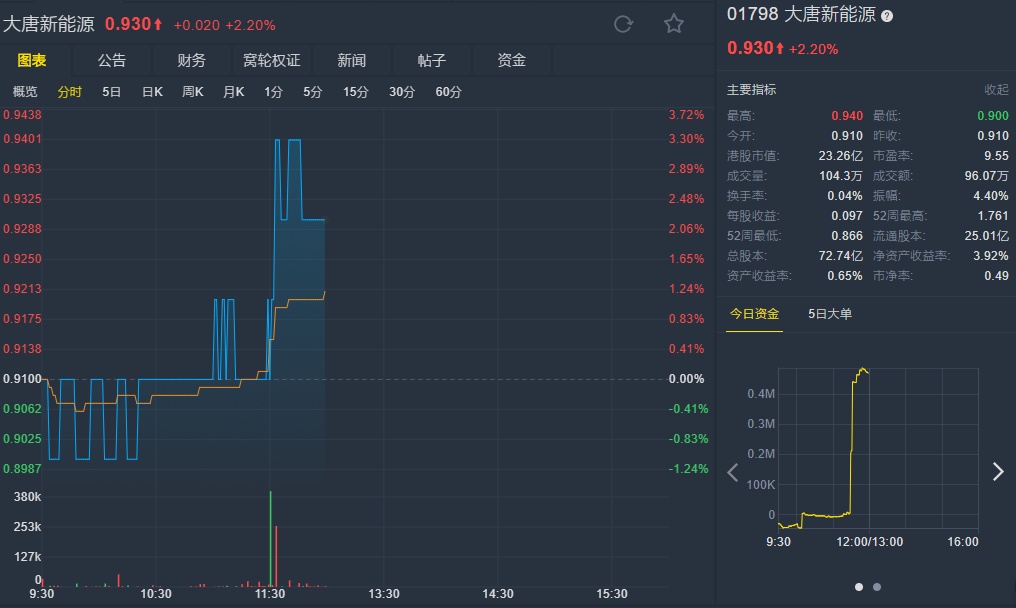 该行称,集团有三分之一的产能在内蒙古地区,利用小时每升1%,将可提升2019年每股盈利4.2%。集团现价相当于2019/20年预测企业价值倍数分别7.2倍及6.8倍,及2018至2020年预测每股盈利年复合增长率为20%。该行下调大唐新能源2018及2019年每股盈测分别7.1%及3.9%,反映去年新增产能下跌,目标价由2.2港元降至2.1港元。该行估计,大唐新能源今年自由现金流将转正数。重申评级“买入”。