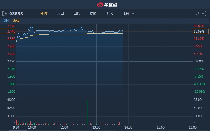 智通财经APP获悉,莱蒙国际(03688)发盈警,预计2018年综合纯利同比将大幅减少,1月16日股价高开,一度升至2.5港元。截至13点49分,涨15.57%,报2.45港元。