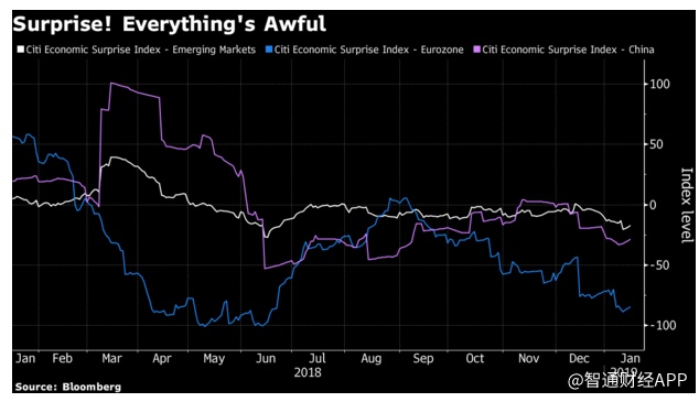 两位分析师表示,欧洲和新兴市场的经济惊喜指数均陷入负值区间。而标普500指数成份股公司约有三分之一的营收来自海外,海外市场的进一步疲软可能最终会令美国国内的增长前景变得黯淡。此外,美国国内的经济增长前景在一定程度上也已经因美国政府部分关门而减弱。