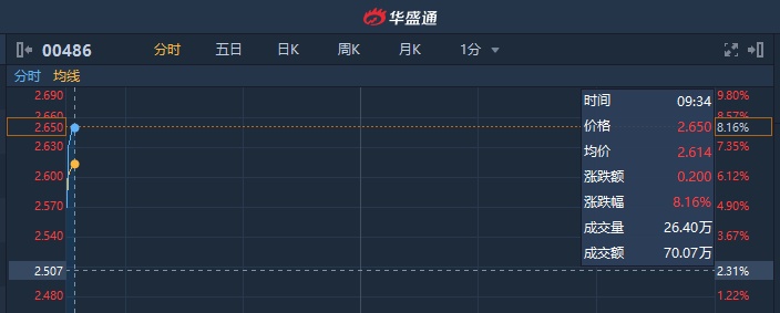 智通财经APP获悉,俄铝(00486)早盘现强力拉升,截至9时33分,涨8.16%,报2.65港元,成交额1381万港元。