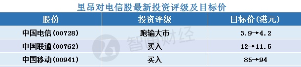 三、里昂对三大电信股最新投资评级及目标价汇总