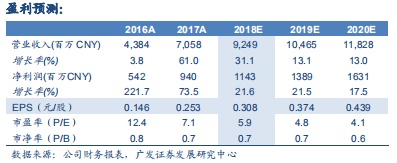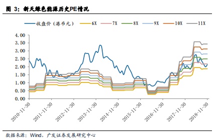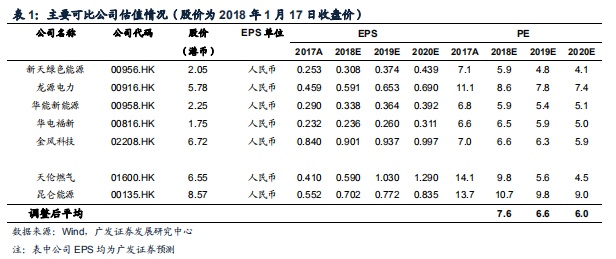 2019年1月17日,新天绿色能源(00956)收盘价为2.05港元,我们预测公司2018-2020年公司EPS分别为人民0.308/0.374/0.439元,对应当前股价市盈率分别5.9/4.8/4.1倍。由于公司18年运营表现总体符合预期,19/20年公司预期业绩增长确定性高且增幅度高于行业平均,我们基于2019年的行业平均估值6.6倍市盈率给予合理价值2.80港元/每股,并维持“买入”评级。