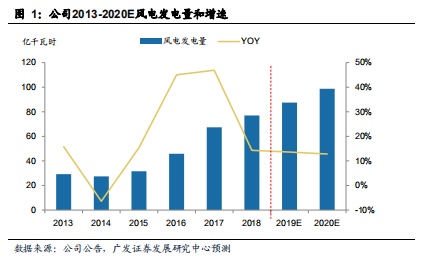 我们认为由于(1)河北省弃风率水平较低(18 年5%左右),且靠近消纳地弃风率比较稳定(2)不同于风电运营龙头公司,公司每年400-500MW 的新增装机规模相对于存量规模比例较大。2019/20 年风电板块业绩将持续稳中有增。我们预计19-20 年公司风电发电量增长13.6/12.8%。