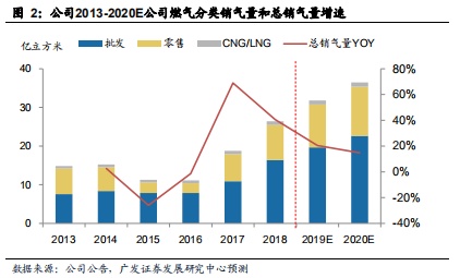 我们认为2018 年燃气业务大幅增长主要是17年的燃气供给缺口得到补充带来的销量释放,以及河北省燃气需求的持续稳定扩张。考虑到河北省燃气供需持续偏紧,19年公司可能在气源供应上仍面临一定的压力,但不会严重到17年的“气荒”程度,我们预计由于需求持续上涨,2019-20年公司燃气总销量每年增速为20%/15%。