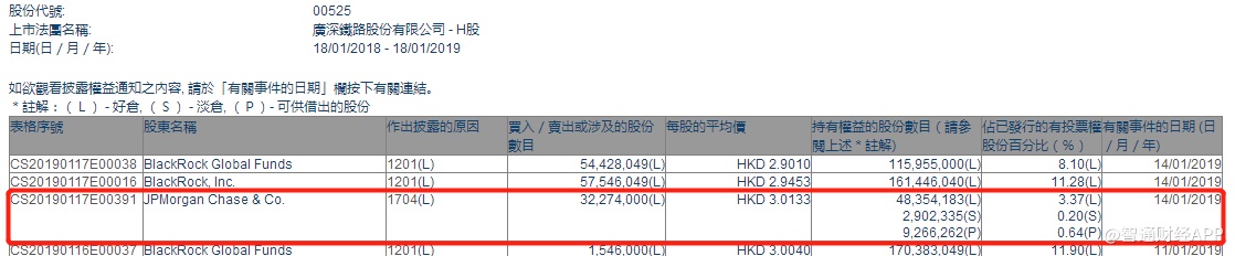 智通财经APP获悉,联交所股权变动资料显示,摩根大通于1月14日减持广深铁路股份(00525)3227万股,每股作价3.01港元,总值约9713.27万港元,最新持股数目4835万股,最新持股比例降至3.37%。