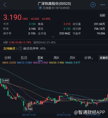 截至今日收盘,广深铁路股份(00525)涨0.95%,报3.19港元。