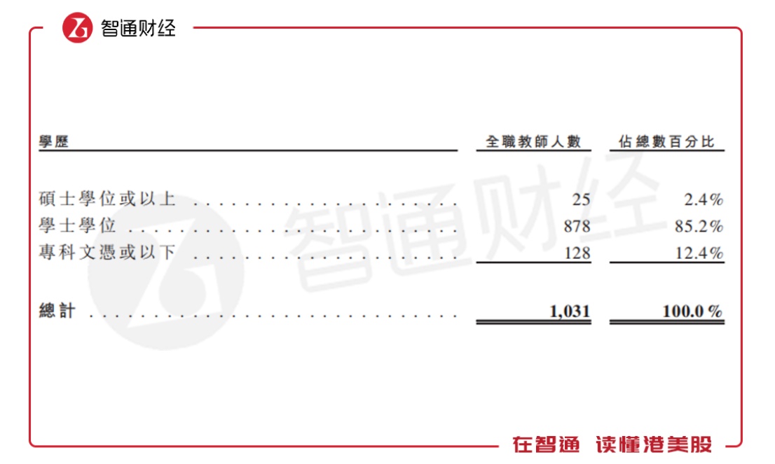 中国远方招股书显示,截至2018年9月30日,公司共有1866名员工,其中全职教师1031名,拥有学士学位及以上学位的教师比例为87.6%。