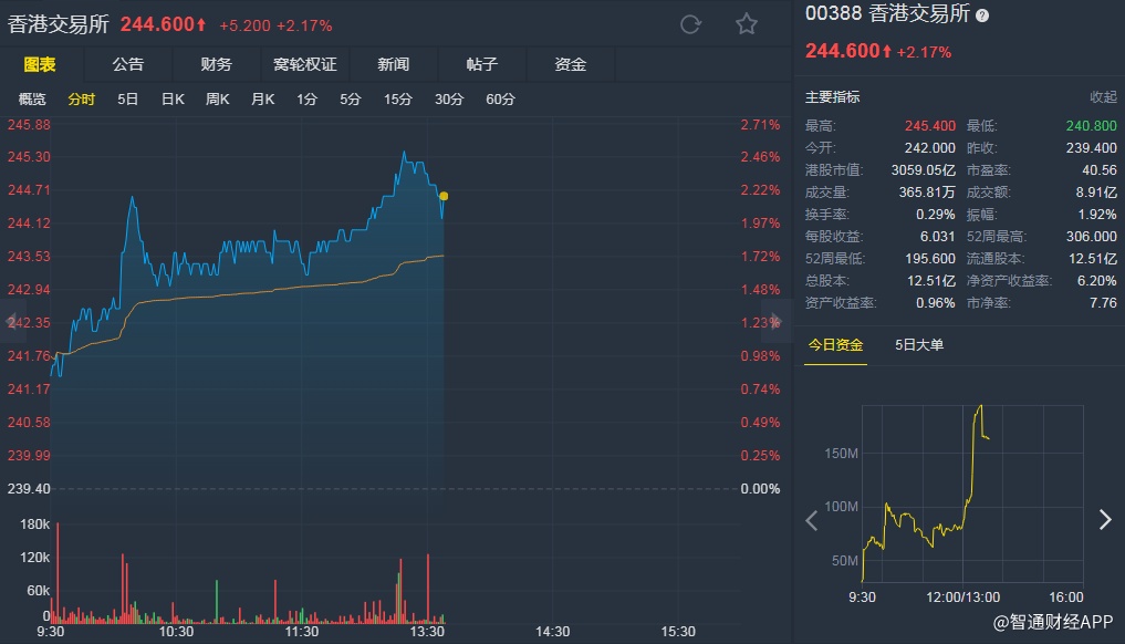 报告称,香港股市交易额维持强劲,预计港交所股价表现理想,倘内地和香港股市步入佳境,预计港交所亦跟随反弹。以基本情境估算,在股市交易额稳定、北水强劲流入,及利率上升背景下,即使过去数月市势疲弱,港交所盈利仍有支持。大摩称,港交所现估值相当于今年预测市盈率31倍,相较历史而言估值仍属吸引。