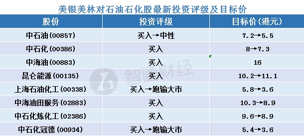 二、美银美林对石油石化股最新投资评级及目标价汇总