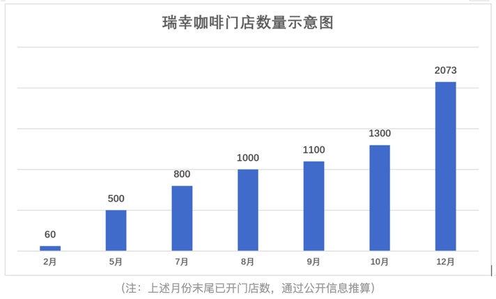 2018年1月1日,瑞幸咖啡以2间门店开始试运营,5月8日以400间门店宣布正式开业。到年末,2073家门店有半数开业不到4个月。