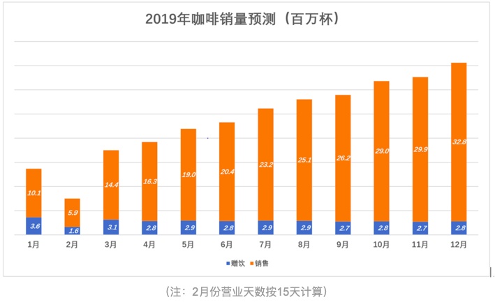 预计到2019年12月,瑞幸咖啡单月销量可达5410万杯,赠饮280万杯,合共5690万杯。