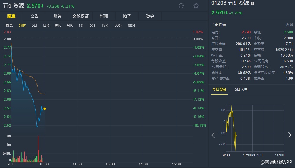智通财经APP获悉,瑞信发表研究报告,下调五矿资源(01208)投资评级,由“跑赢大市”降至“中性”,目标价由5.5港元降至3港元。