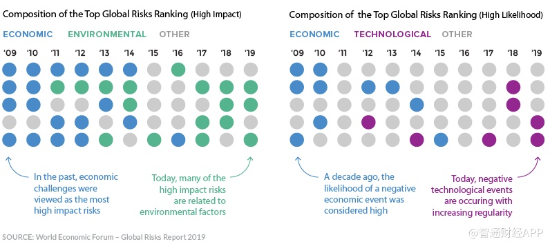 《全球风险报告》每年都会罗列出未来一年中被全球领导人视为重点的风险因素。例如,在2009年时,世界仍处于金融危机的泥潭中,经济问题自然需要被着重讨论。