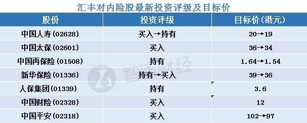 二、汇丰对内险股最新投资评级及目标价汇总