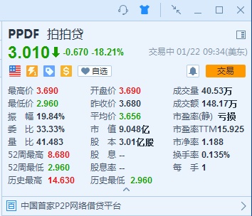 智通财经APP获悉,拍拍贷(PPDF.US)开盘后一度跌逾22%,股价创上市来新低。