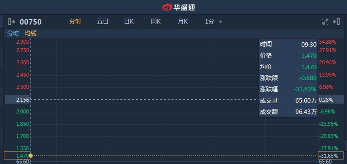 智通财经APP获悉,兴业太阳能(00750)或获水发能源入主,今日复牌股价大跌,创近九年新低。截至9时30分,跌31.63%,报价1.47港元,成交额96.43万。
