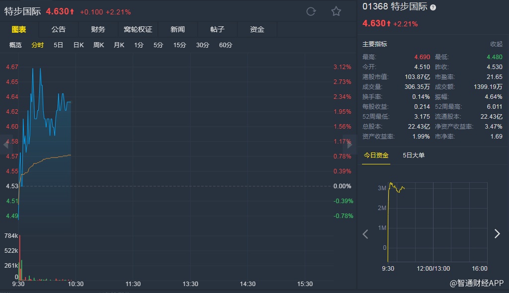 智通财经APP获悉,特步国际(01368)发盈喜后,获中金公司上调其评级至“推荐”,目标价亦提高7%至5.47港元,即较昨日(22日)收市价仍有约21%的上行空间。