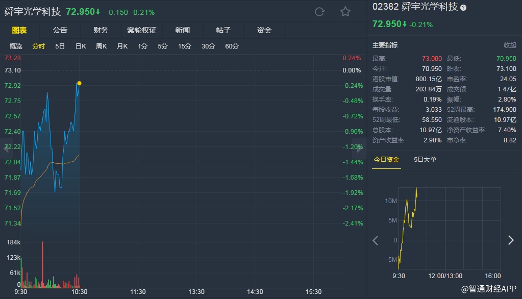 该行还称,低估了公司毛利率压力,预计光电业务毛利率为9%,今年集团每股盈利预测由4.5港元降至4.1港元,股份上望空间为每股80至85港元,今年预测市盈率为20倍,另将其目标价由90港元降至83港元。