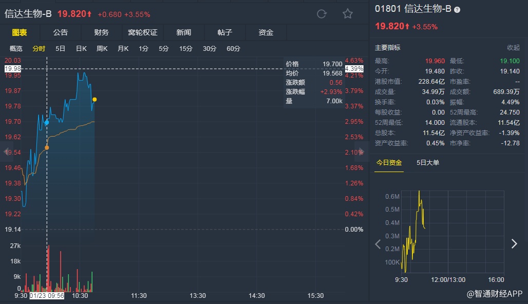 智通财经APP获悉,摩根士丹利昨日(22日)发表技术研究报告预计信达生物(01801)股价30日内将上升,发生此概率预计70%至80%,评级“增持”,目标价27港元。