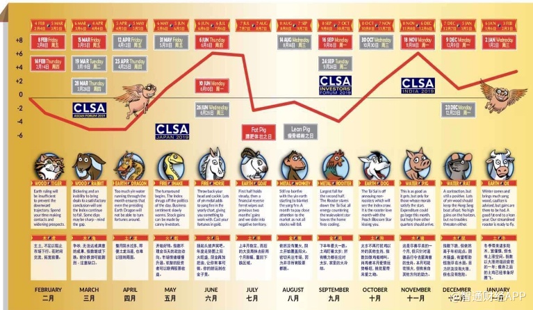 智通财经APP获悉,近日中信里昂证券发布的2019年“风水指数”中预计,农历猪年恒指全年呈震荡走势,年终指数虽高于年初,但略显疲软。
