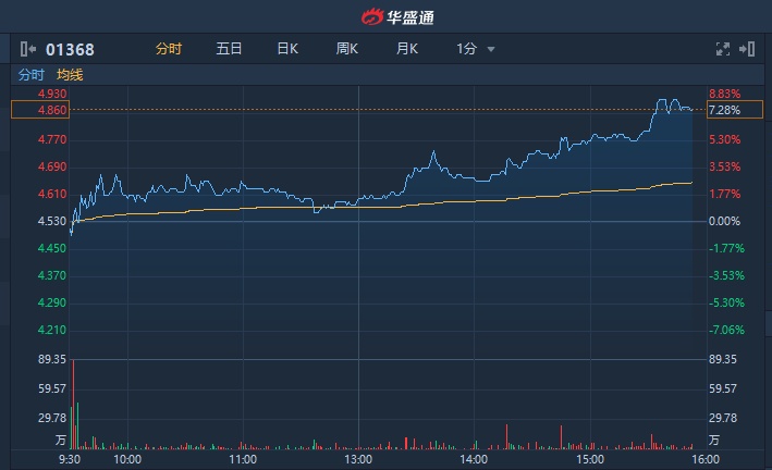 智通财经APP获悉,特步(01368)尾盘涨幅进一步扩大,截至15时52分,涨7.28%,报4.86港元,成交额3564万港元。