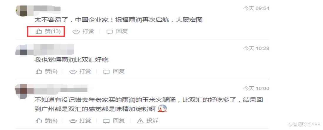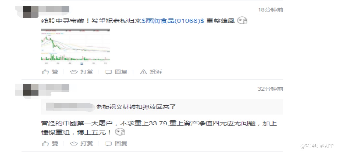 此公告一出,不仅是各大媒体纷纷转发评论,雪球上的股友也各抒己见,不少股友期盼祝义材的回归能令雨润食品重振雄风。