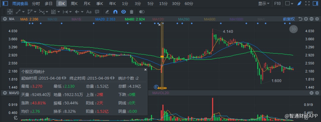 通常来讲,一家公司遭遇此等变故其股价大幅下挫在所难免,但雨润食品却一反常态。2015年4月8日,公司发布“内幕消息及恢复买卖”的公告后,公司股价在两个交易日内反弹43.81%,其后股价更是涨至4.14港元。