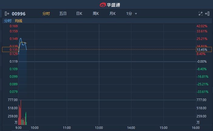 智通财经APP获悉,嘉年华国际(00996)今日高开高走,一度涨超25%,截至9时44分,涨13.45%,报0.135港元,成交额746.2万港元。